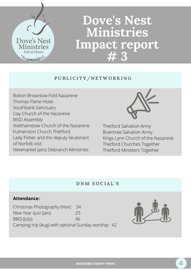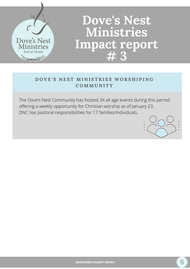 • You will work within Dove’s Nest Ministries policies and procedures and attend any training the charity feels is appropriate to your role.